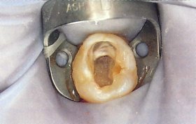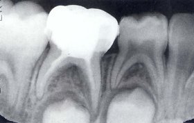 小朋友蛀牙太深故須作根管治療,之後做不鏽鋼乳牙套予以復形.